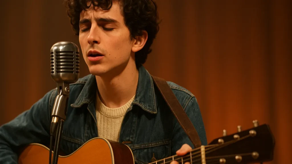 Descubra o que os bastidores e as entrevistas dizem sobre as performances vocais de Timothée Chalamet no filme sobre Bob Dylan.